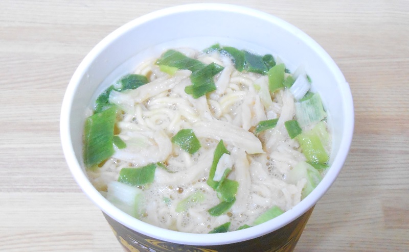 油揚げめん(植物油脂、植物性たん白、小麦粉、食塩、卵粉、でん粉、大豆加工品、香辛料)、スープ(鶏・豚エキス、難消化性デキストリン、たん白加水分解物、食塩、粉末油脂、香辛料、香味調味料、乳等を主要原料とする食品、発酵調味料、しょうゆ)、かやく(味付鶏肉、ねぎ)/加工デンプン、調味料(アミノ酸等)、増粘剤(増粘多糖類、アルギン酸エステル)、トレハロース、かんすい、炭酸カルシウム、乳化剤、リン酸塩(Na)、カラメル色素、微粒二酸化ケイ素、酸化防止剤(ビタミンE)、カロチノイド色素、香料、香辛料抽出物、(一部に卵・乳成分・小麦・えび・牛肉・ごま・さけ・さば・大豆・鶏肉・豚肉・ゼラチンを含む)