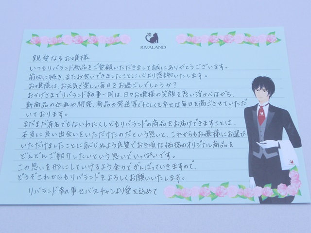 リバランド執事セバスチャンからの手紙です。こういう遊び心が良いですよね。