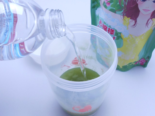 お嬢様GREENスムージーの特典であるオリジナルシェイカーです。先ほども言いましたが2個からでないと付かないので注意しましょう!